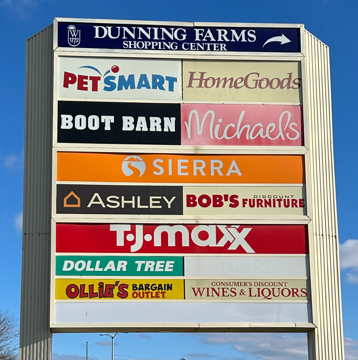 Dunning Farms Shopping Center is a 360,000-square-foot shopping center in Middletown, New York, about 50 miles northwest of New York City. The center’s roster of 25 tenants includes Boot Barn, Michael’s and Bob’s Discount Furniture. Located in the mid-Hudson Valley, Dunning Farms is easily accessible from northern New Jersey and Pennsylvania and offers prime exposure to the 7,500 vehicles passing daily along Dunning Road.